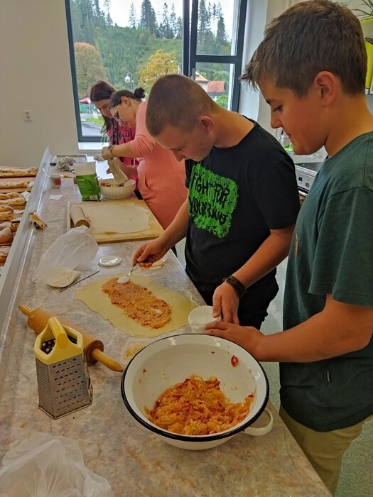 Také letos se naši žáci dobrovolně zapojili do soutěže vyhlášené Charitou v Novém Hrozenkově o nejlepší jablečný štrúdl – Štrúdlování. Během pondělního dopoledne 26. září se pekaři a pekařky vystřídali v naší školní kuchyňce, kde během 60 minut měli za úkol upéct ten nejlepší štrúdl do soutěže z toho nejlepšího těsta, tajných ingrediencí a podle zaručeně vítězného receptu. Někdo stihl upéct jeden, někdo dva, rekord byly 4 štrúdly, ty se pak ochutnávaly mezi spolužáky ve třídách.