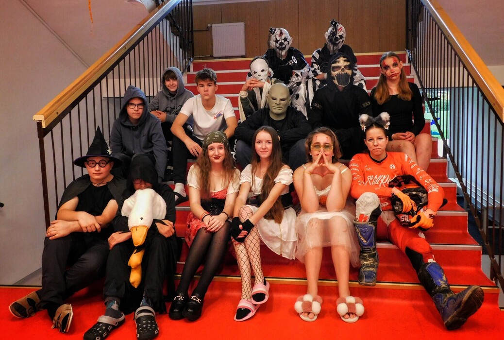 Přestože nám budíček kolem 6 ráno moc nepřidal, učebny jsme do původního stavu dát zvládli, a do kostýmů - i když na poslední chvíli - jsme se převléct taky stihli.