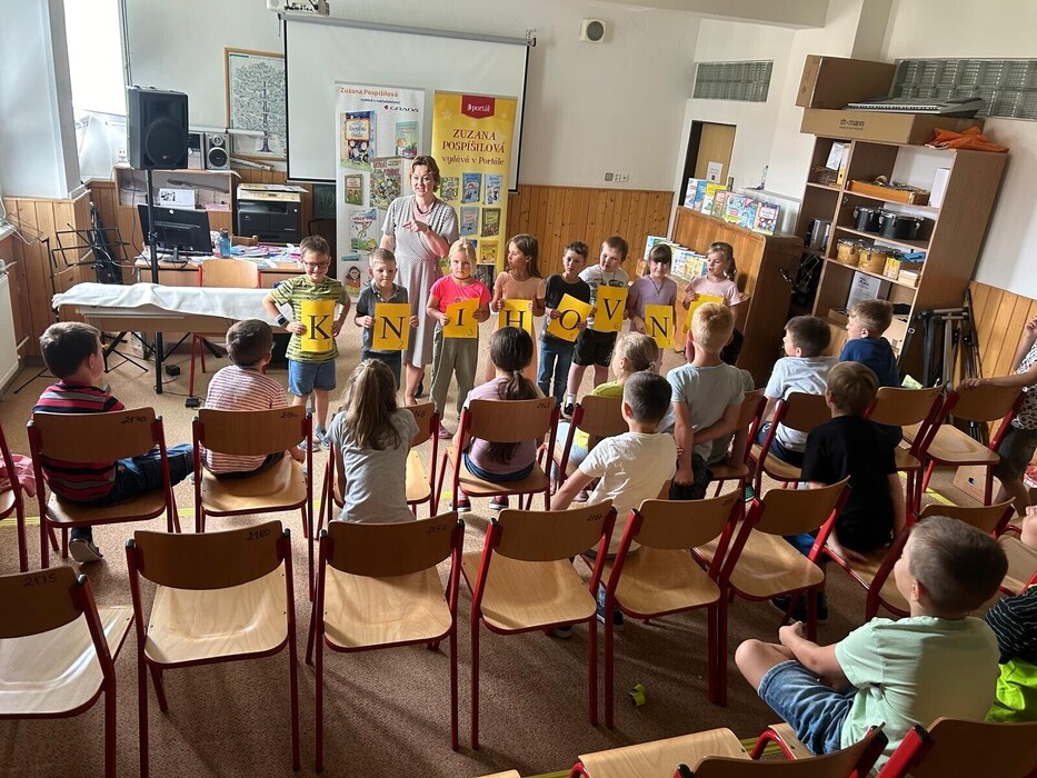 Ve čtvrtek 20.6. proběhlo pod záštitou knihovny na naší škole "Pasování prvňáčků na čtenáře". Slavnostním pasováním provázela oblíbená spisovatelka Zuzana Pospíšilová. S dětmi si povídala o knížkách, ty pak hádaly hádanky a řešily hříčky se slovy. Za přítomnosti paní knihovnice Písmenkové královny jednoho po druhém pasovala mečem do čtenářského řádu. Fotogalerie.