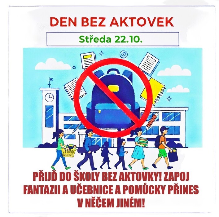 Škola plná kufrů, košíků, vozíků, krabic, obalů od hudebních nástrojů.... tak vypadal středeční DEN BEZ AKTOVEK, který pro své spolužáky zorganizoval školní parlament. Úkolem bylo přinést učebnice a pomůcky v čemkoli jiném než v aktovce! Kreativitu našich žáků posuďte sami. FOTOGALERIE