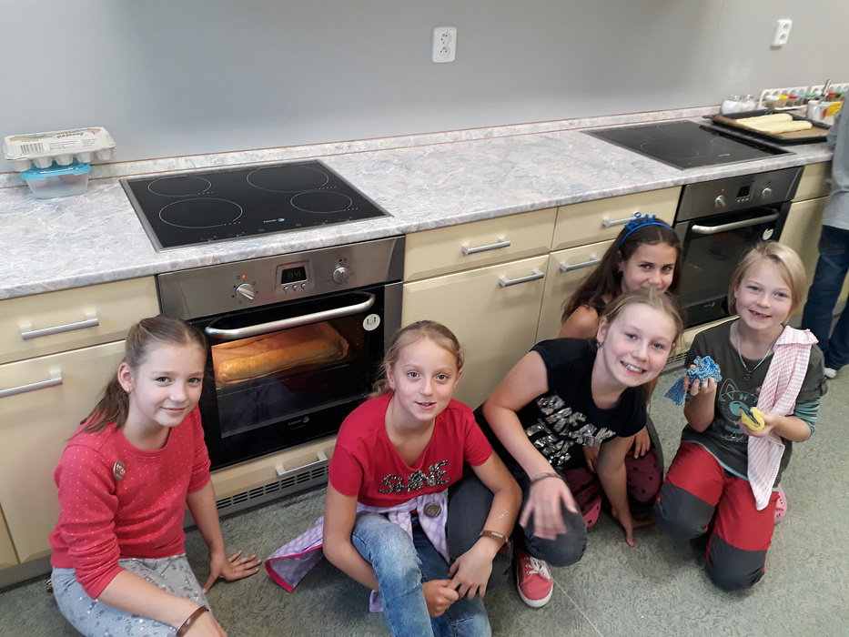 Ve středu 9.10. se žáci 3. ročníku v rámci projektu 72 hodin pustili do pečení závinů v nově rekonstruované cvičné kuchyňce. Čtyři skupiny celkem napekly 10 závinů. Děti překvapily nejen svou šikovností a zručností, ale také vytříbenými chuťovými pohárky, díky kterým se ve výsledku mohly pochlubit rozmanitým výběrem druhů, a kromě jablkových závinů tak nechyběly ani makové, tvarohové či ořechové.