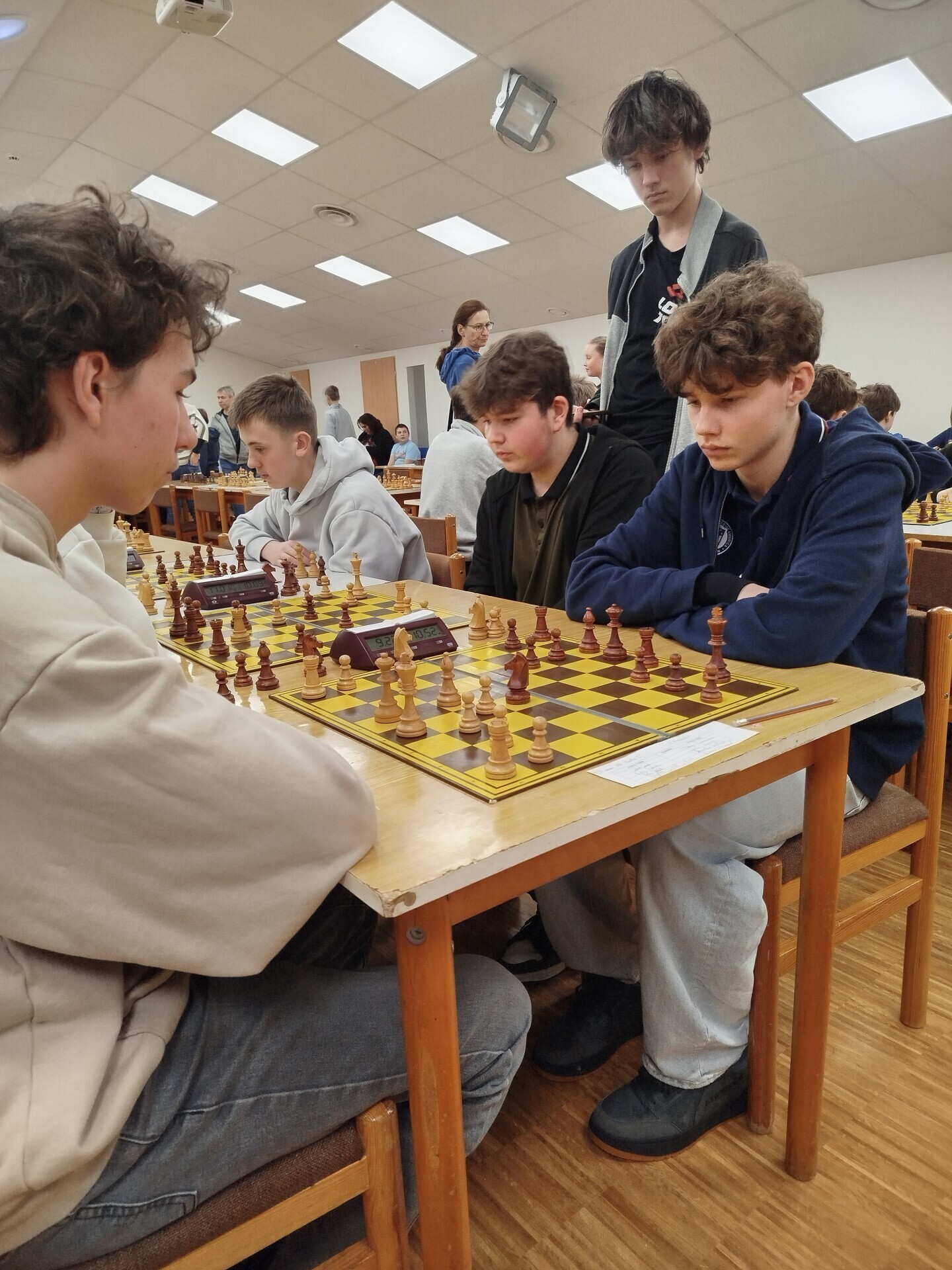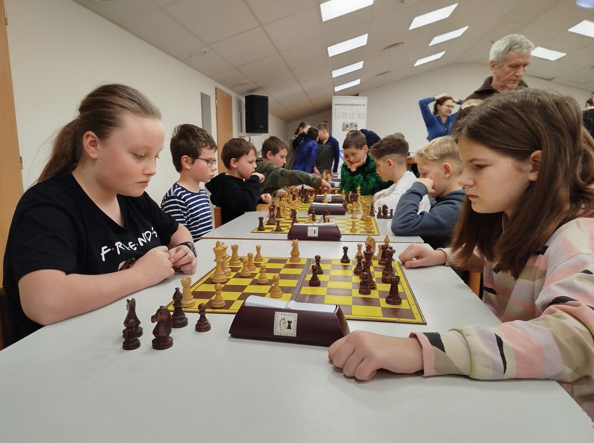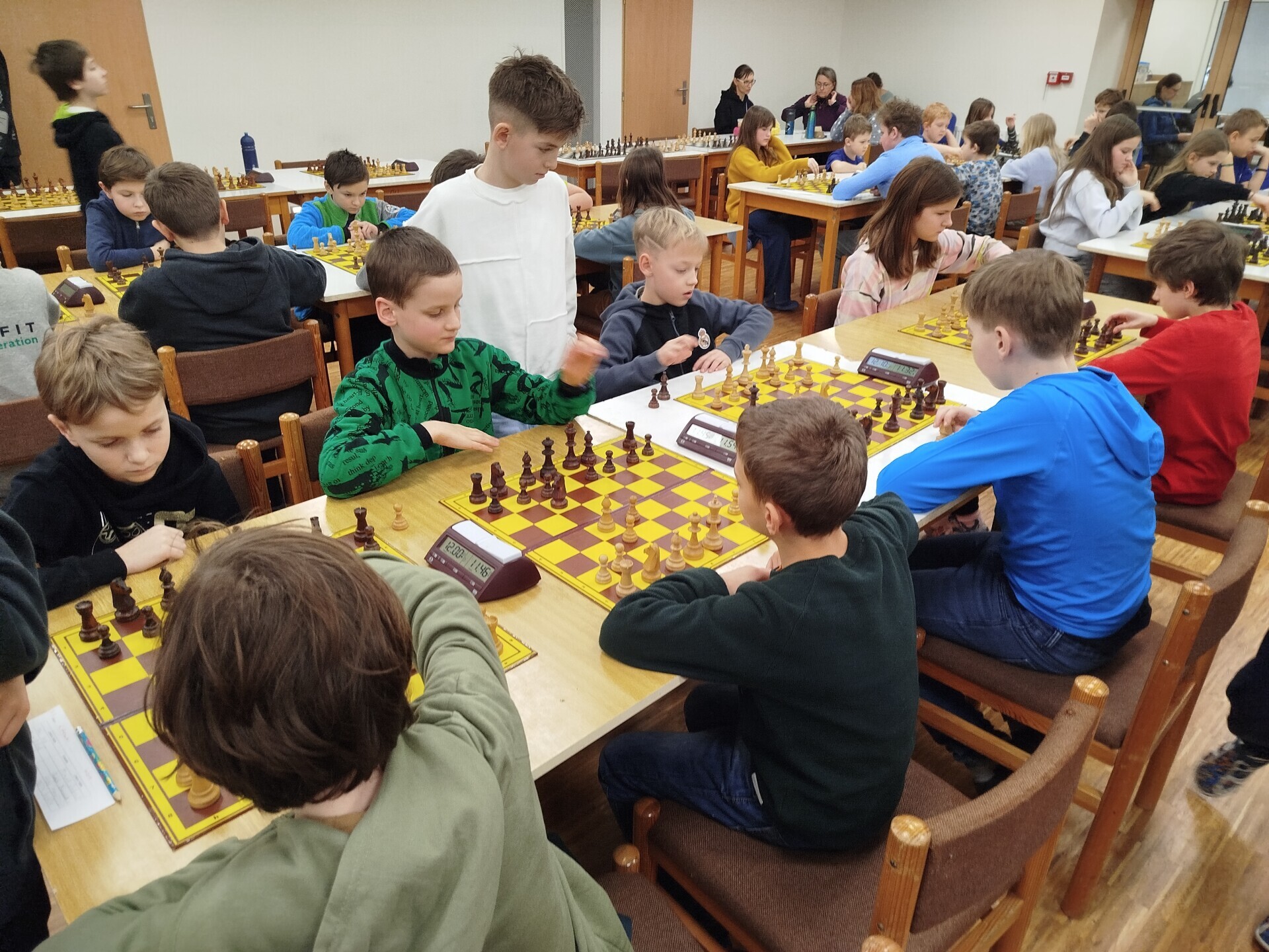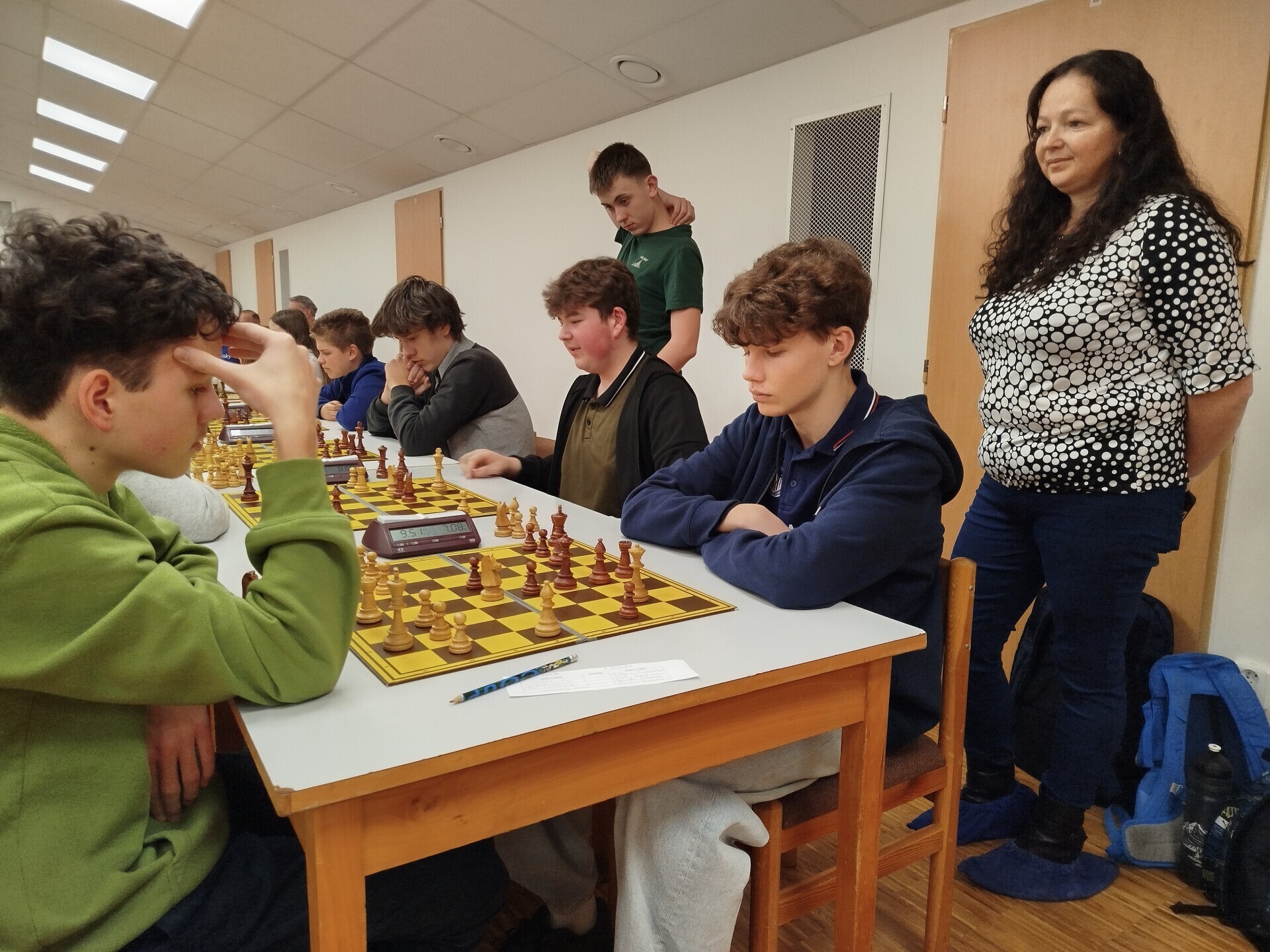 V pátek 16. ledna jsme spolupořádali v Liptále okresní přebor škol. Zúčastnilo se ho 25 družstev, naši školu reprezentoval v mladší kategorii tým ve složení Matouš Vrážel, Adam Valíček, Daniel Kukul, Matěj Kudláček a Saša Mazáčová, starší nastupovali k šachovnicím v sestavě Makar Znoienkov, Josef Šarman, Vojtěch Čokavec, Jaroslav Dohnal a Šimon Koňařík. Díru do světa jsme ještě coby začátečníci neudělali, avšak příslib do dalších šachových časů určitě máme.