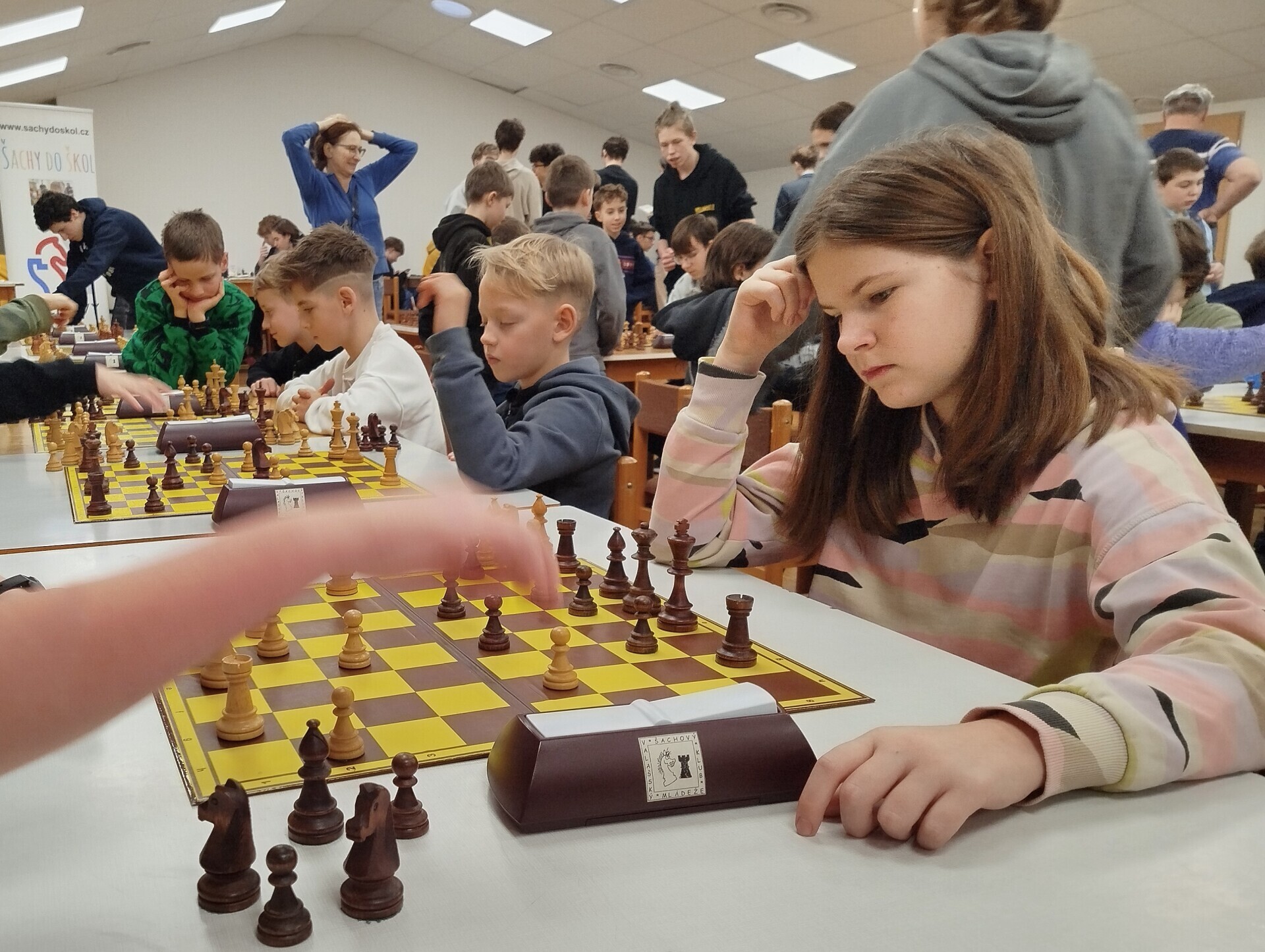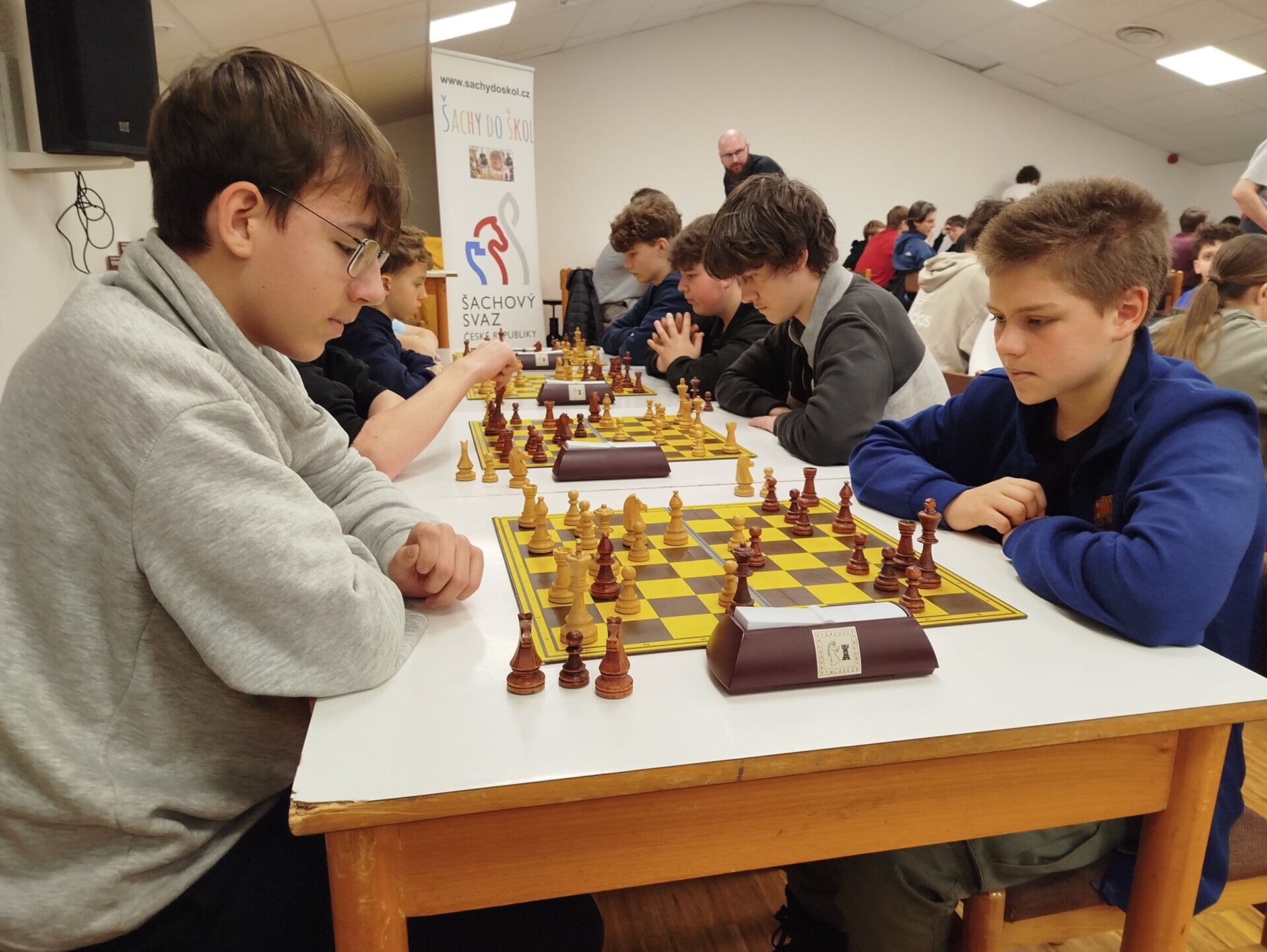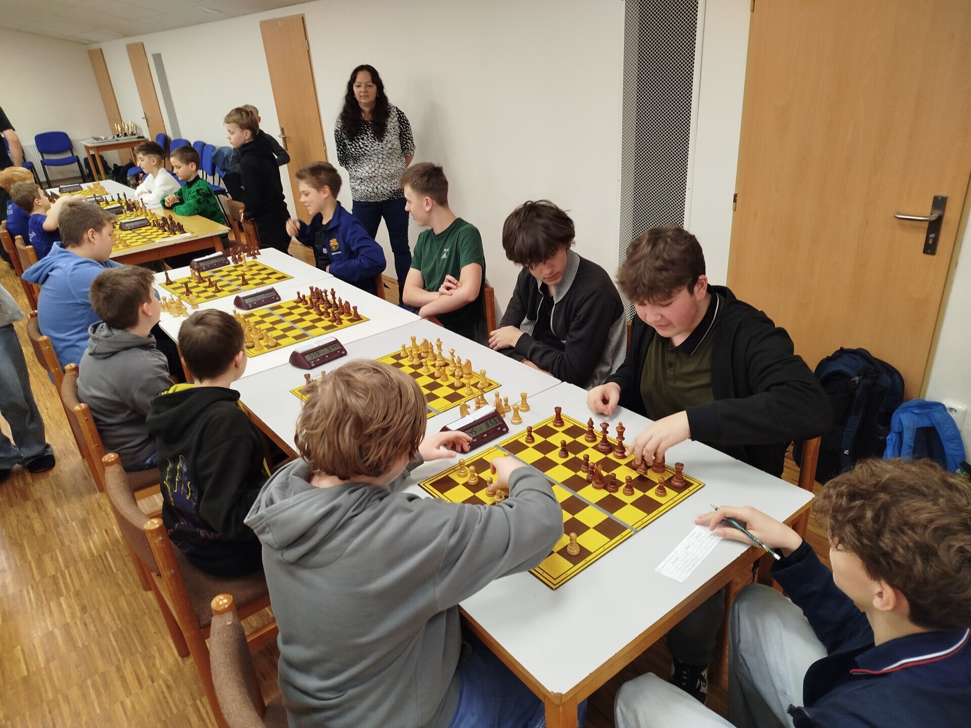 V pátek 16. ledna jsme spolupořádali v Liptále okresní přebor škol. Zúčastnilo se ho 25 družstev, naši školu reprezentoval v mladší kategorii tým ve složení Matouš Vrážel, Adam Valíček, Daniel Kukul, Matěj Kudláček a Saša Mazáčová, starší nastupovali k šachovnicím v sestavě Makar Znoienkov, Josef Šarman, Vojtěch Čokavec, Jaroslav Dohnal a Šimon Koňařík. Díru do světa jsme ještě coby začátečníci neudělali, avšak příslib do dalších šachových časů určitě máme.