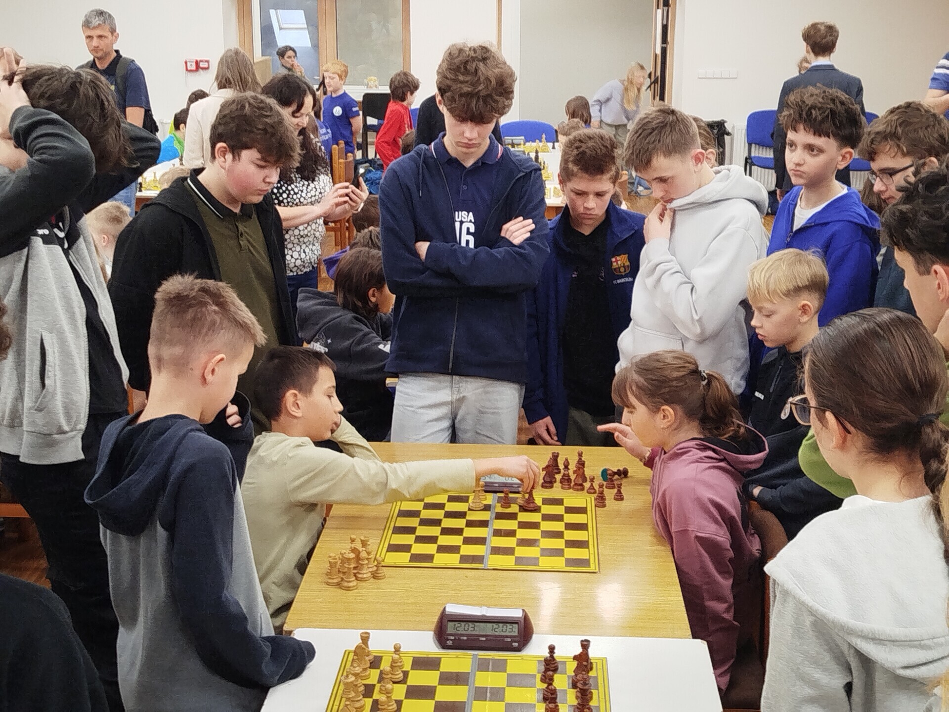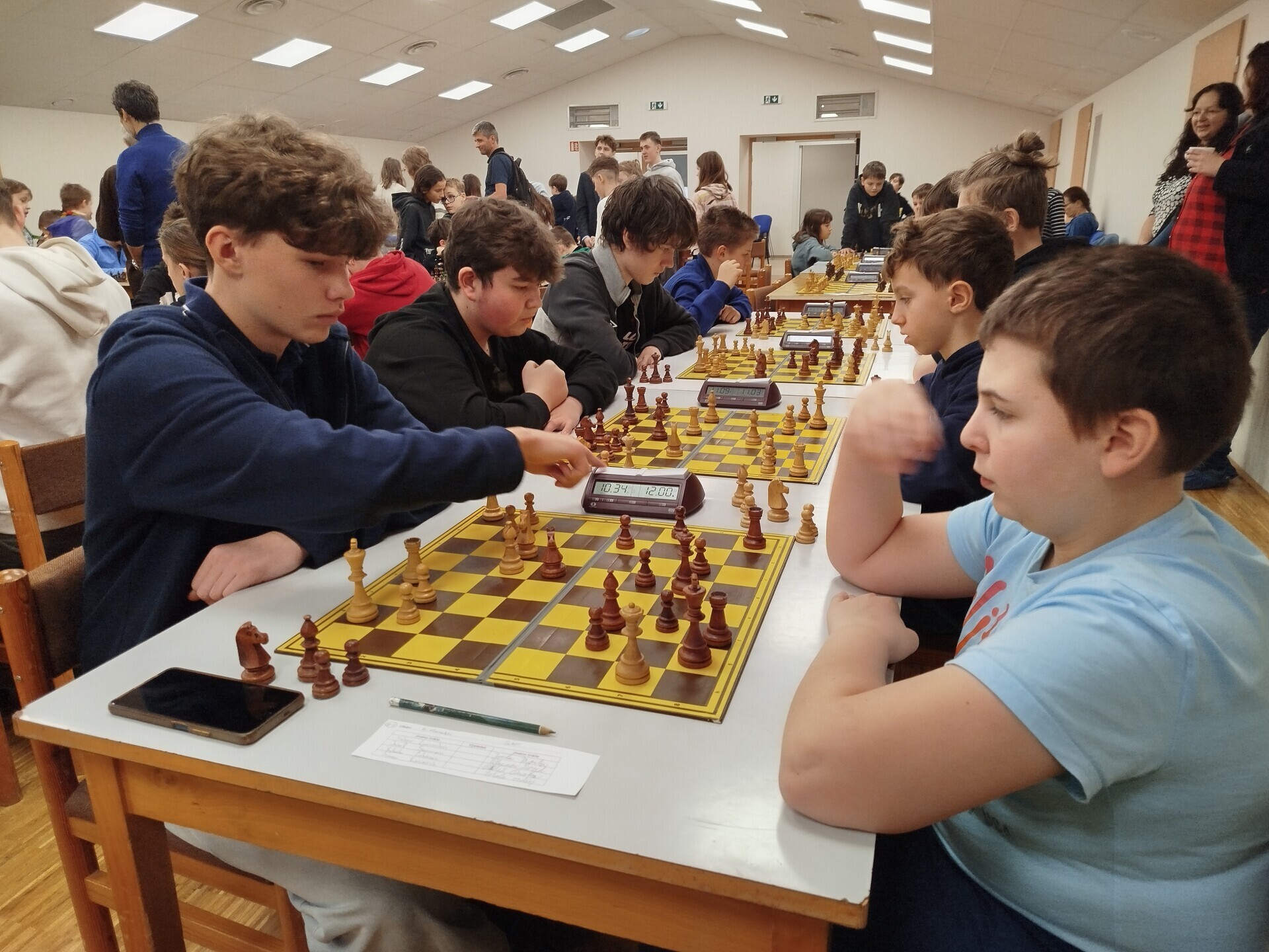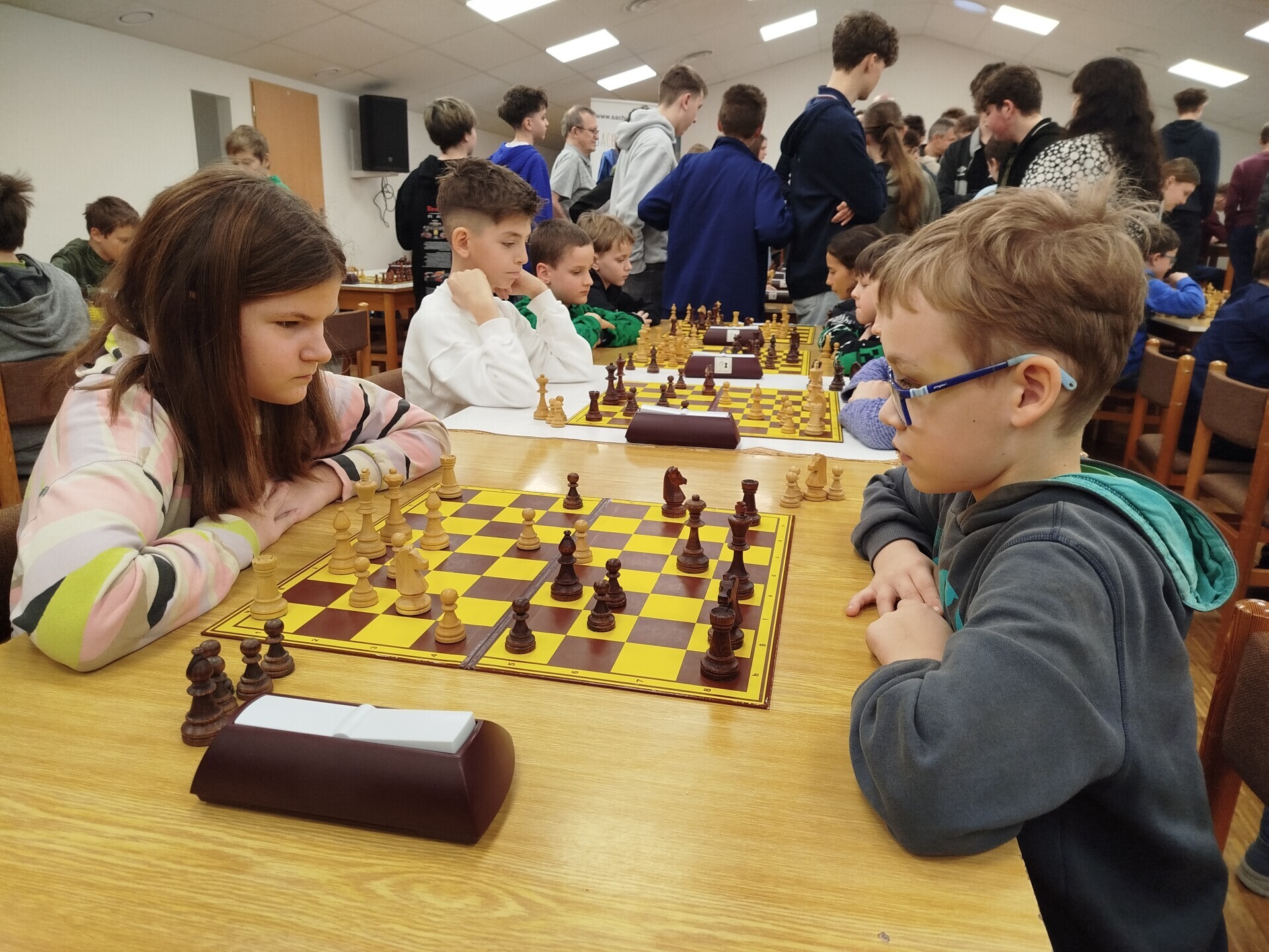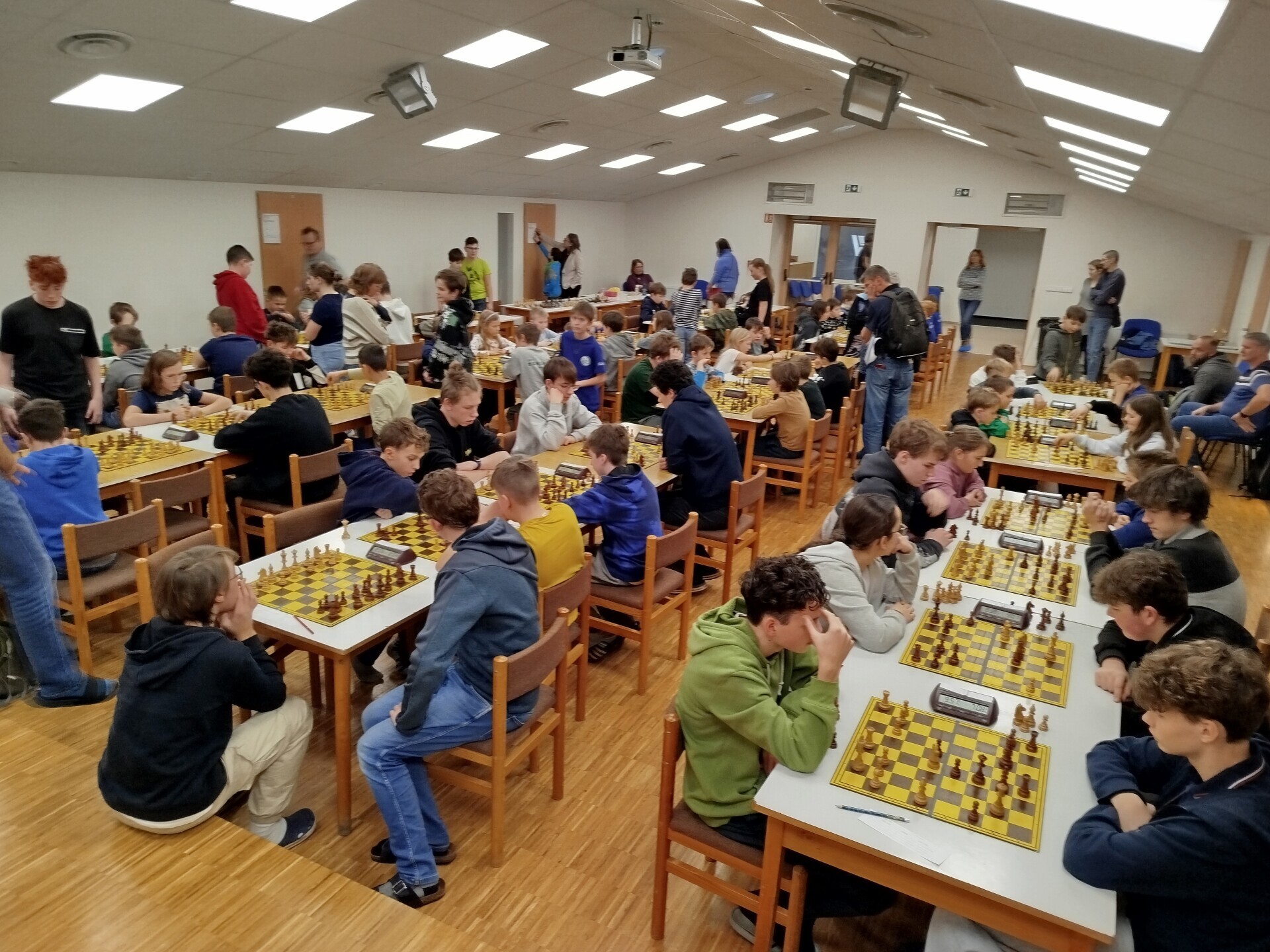V pátek 16. ledna jsme spolupořádali v Liptále okresní přebor škol. Zúčastnilo se ho 25 družstev, naši školu reprezentoval v mladší kategorii tým ve složení Matouš Vrážel, Adam Valíček, Daniel Kukul, Matěj Kudláček a Saša Mazáčová, starší nastupovali k šachovnicím v sestavě Makar Znoienkov, Josef Šarman, Vojtěch Čokavec, Jaroslav Dohnal a Šimon Koňařík. Díru do světa jsme ještě coby začátečníci neudělali, avšak příslib do dalších šachových časů určitě máme.