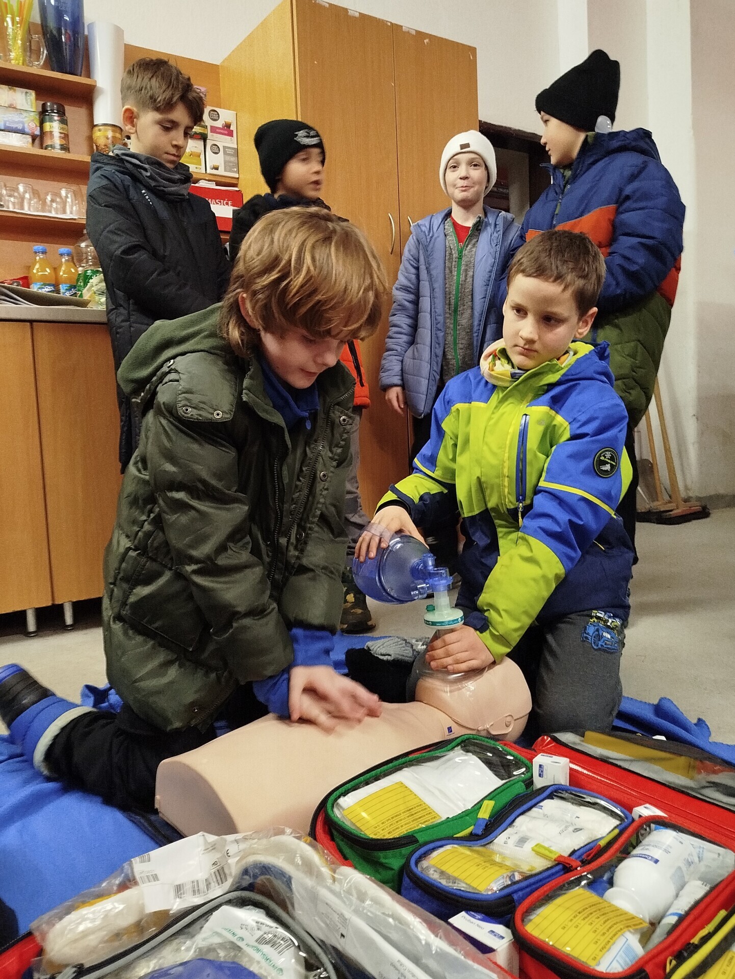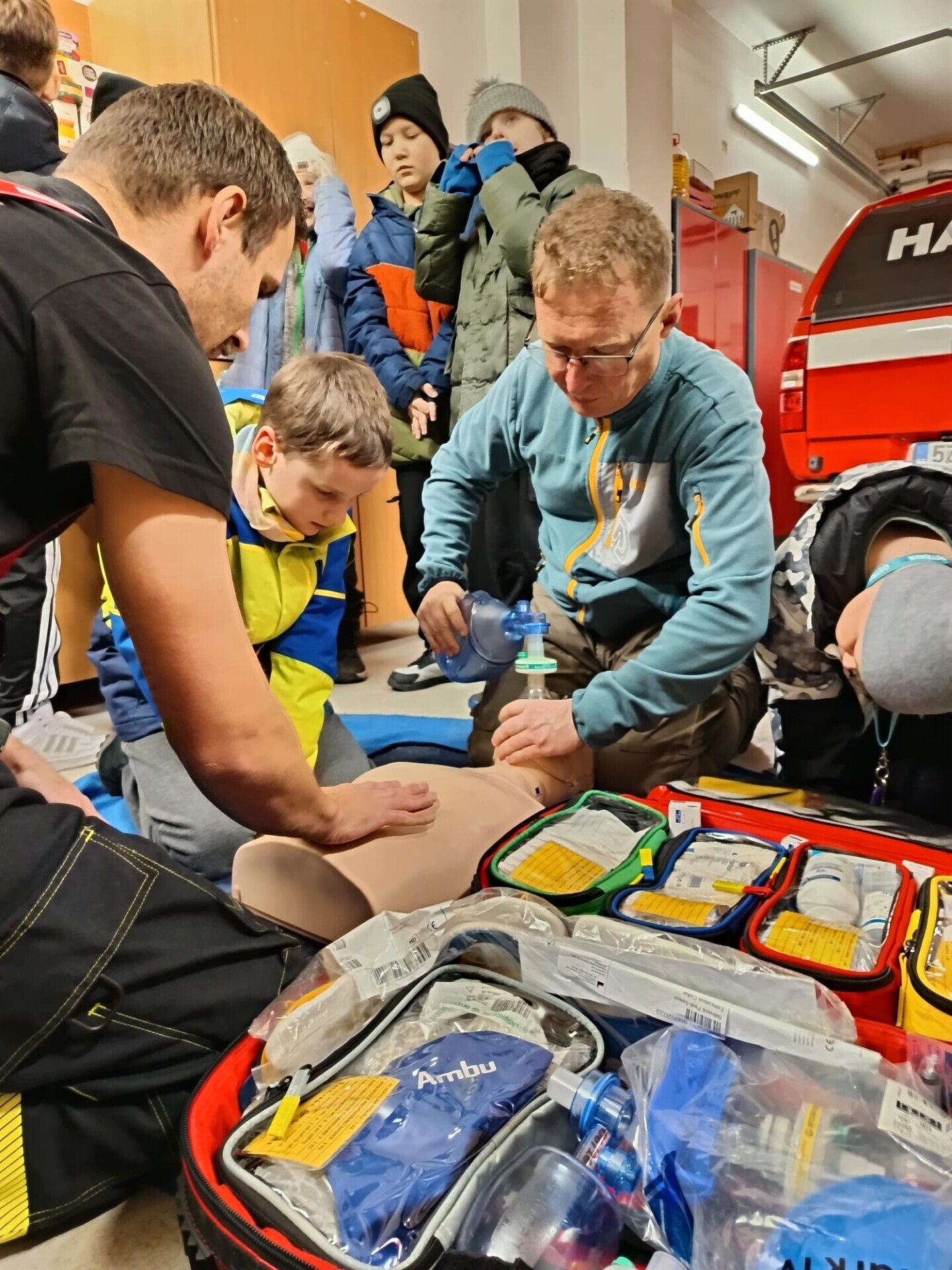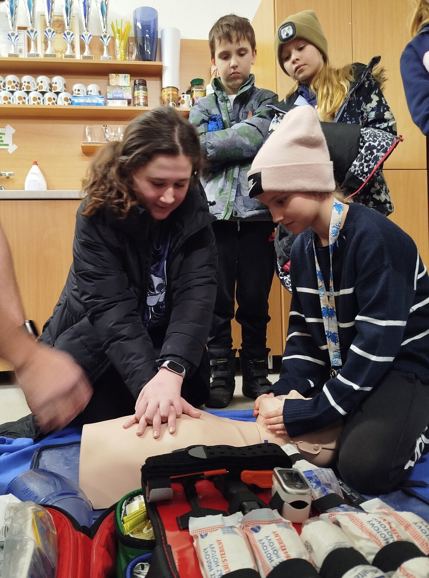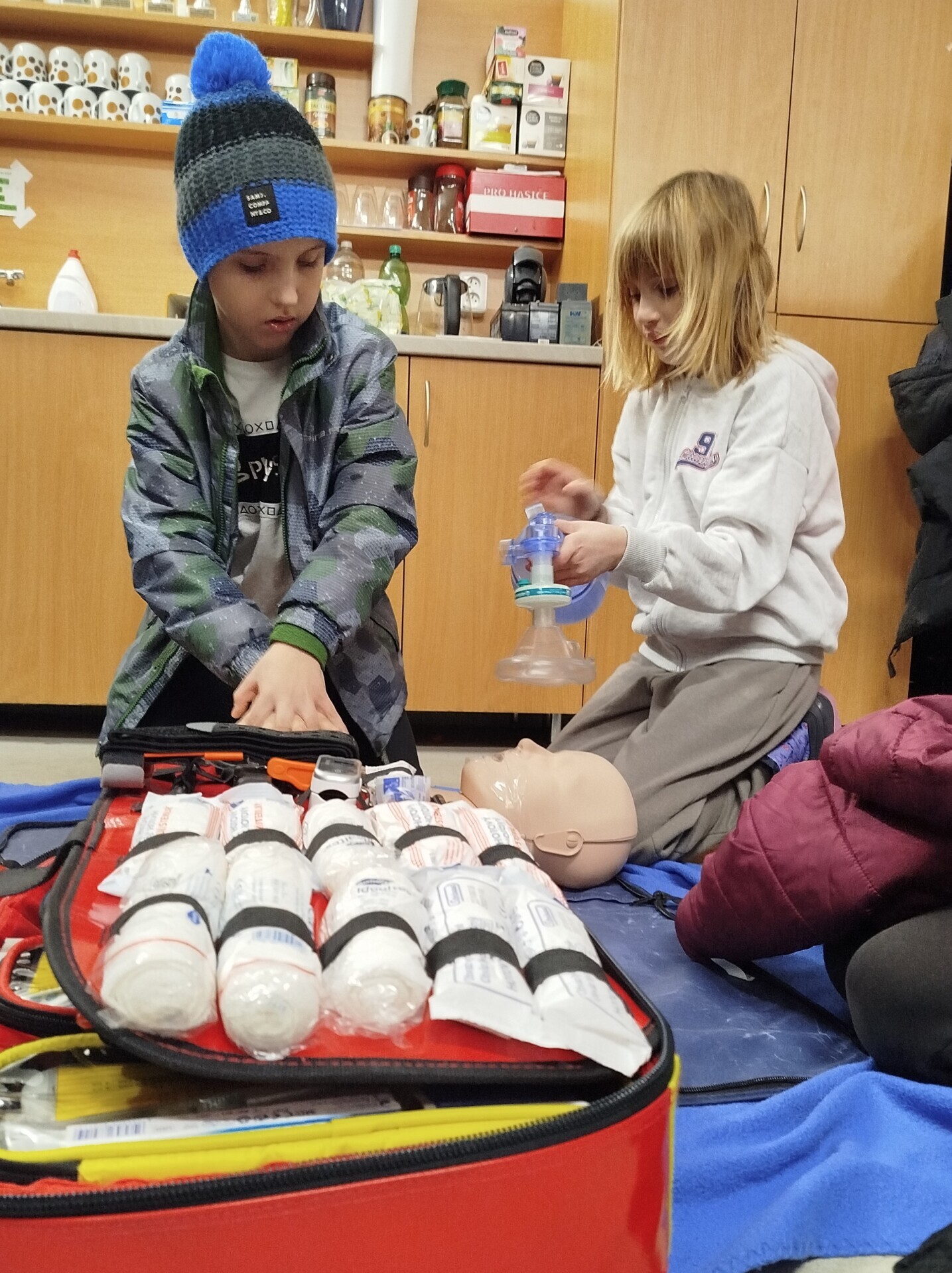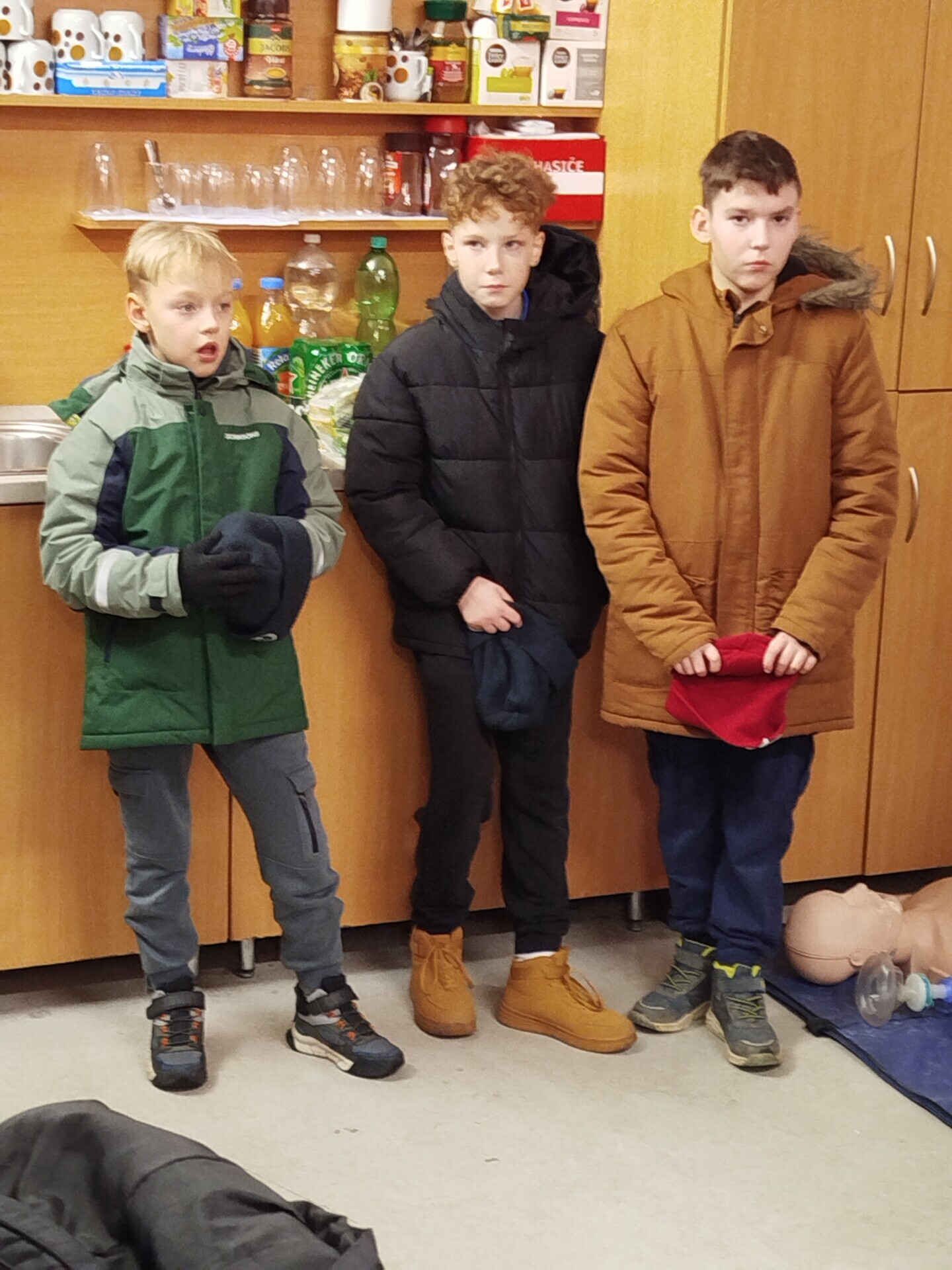 Přenocovali jsme ve škole. Předtím jsme večer navštívili místní hasiče. Chlapi se nám úžasně věnovali. Vytáhli nám ven auto za spoustu miliónů a předvedli, jaké vybavení má. Nejvíc se všem líbilo naskákat na chvíli dovnitř. V hasičárně probíhala lekce zdravovědy. Děti si vyzkoušely, že taková masáž srdce není vůbec jednoduchá. A noc samotná? No krátká, jak jinak. Však se doma potom všichni doodpočívali...
