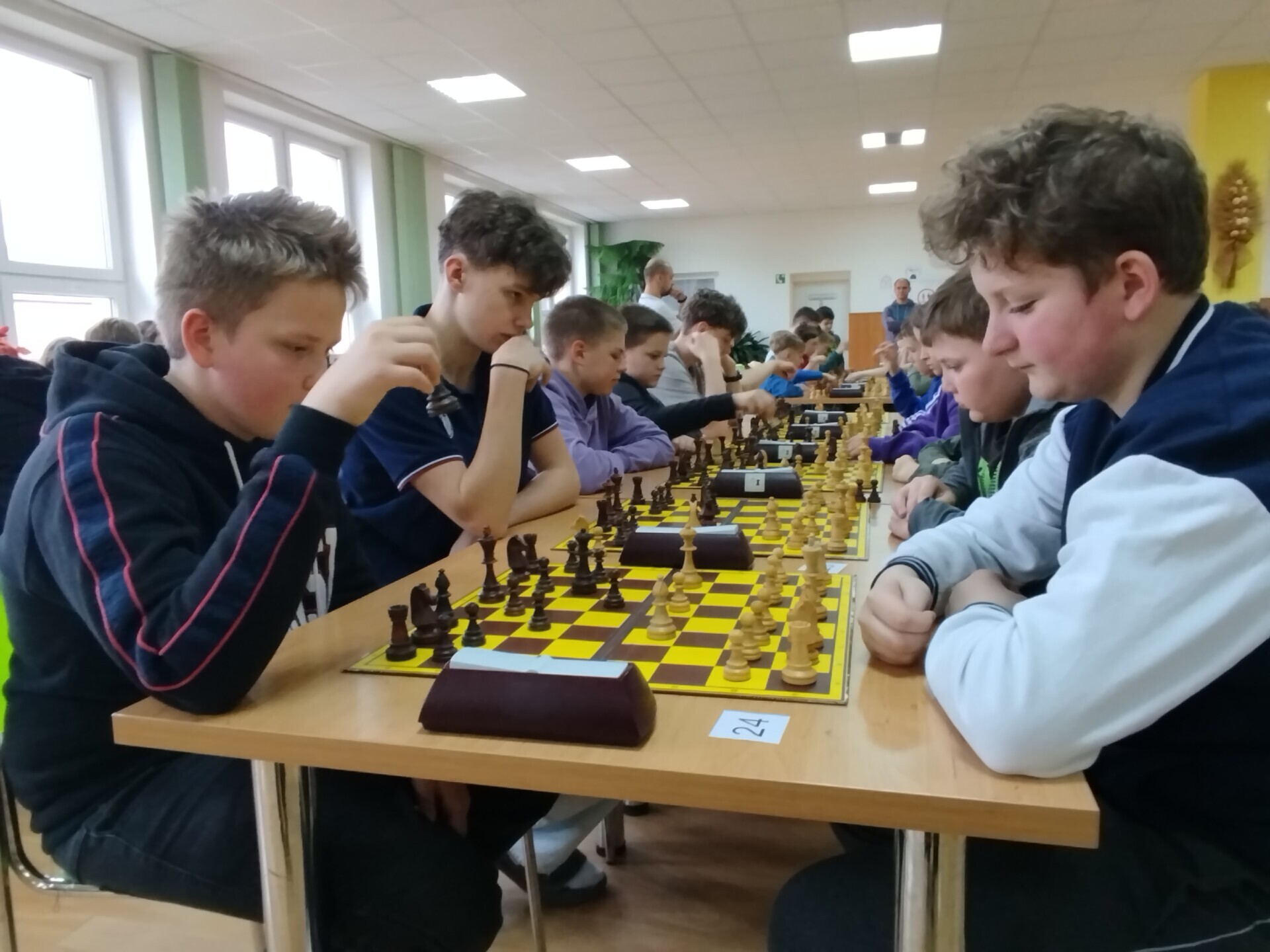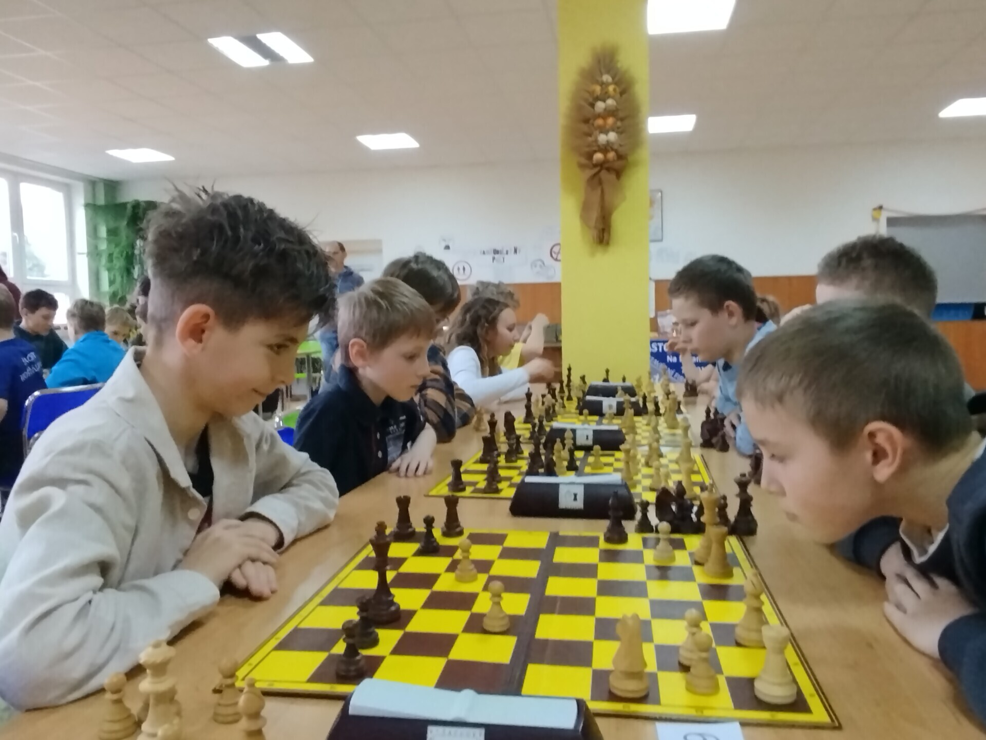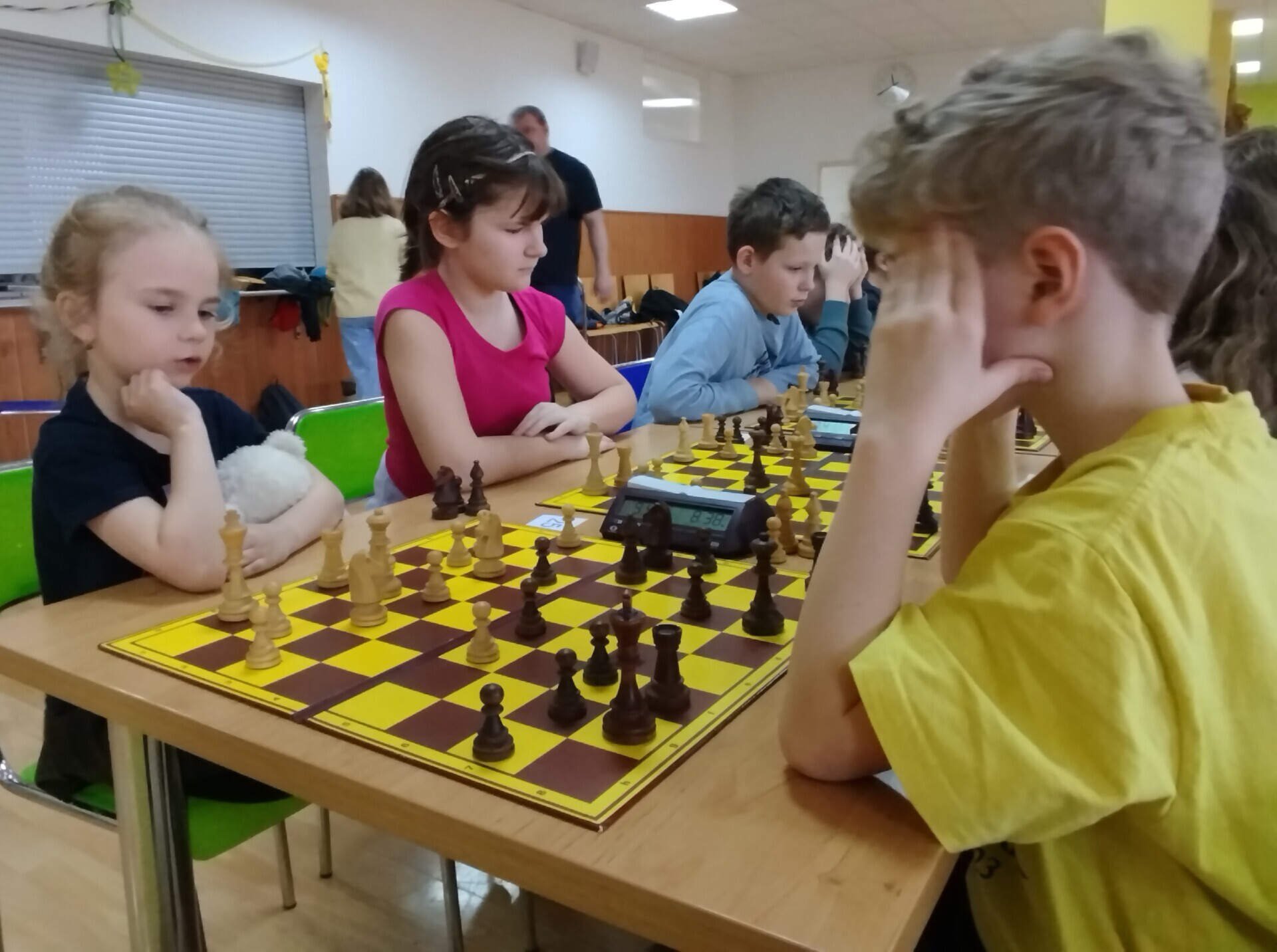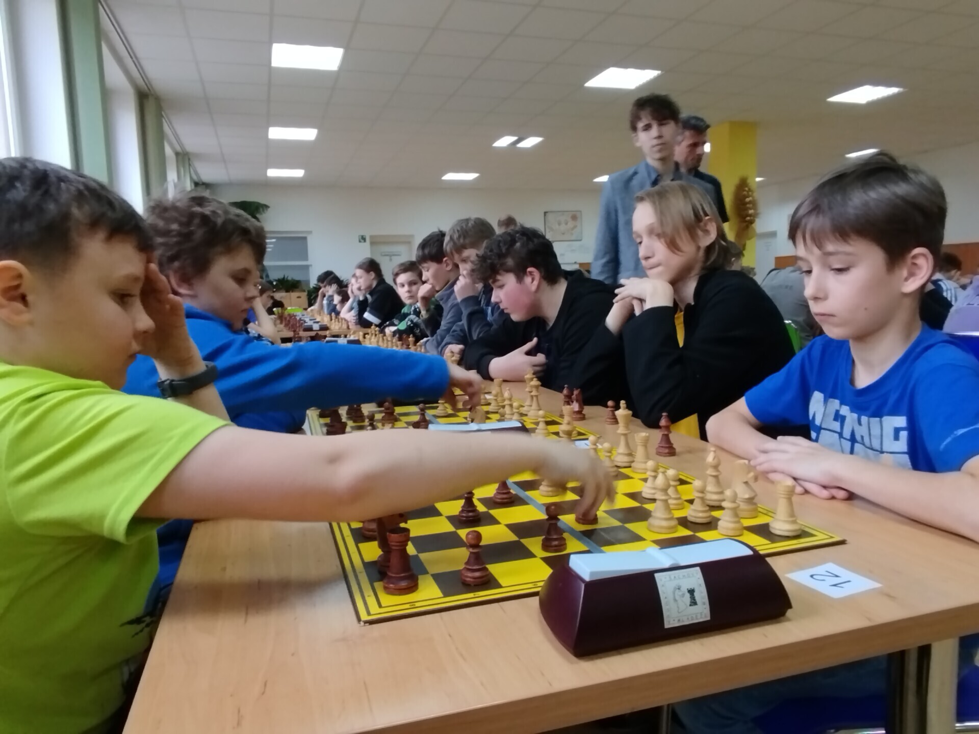 Ve škole jsme uspořádali sobotní šachový turnaj. V jídelně se sešlo 59 dívek a chlapců, aby se utkali na královském poli. Vítězem osmikolového klání se stal Jan Podzemný z Huslenek. Mezi šachisty z Karolinky, Hošťálkové, Ústí, Lužné, Francovy Lhoty, Bystřičky, ze Zubří, Vsetína a Slavičína se představilo 17 žáků a žákyň naší školy. Nejvýše se umístili Josef Šarman a Matouš Vrážel, kteří dokázali uhrát 4,5 bodu. V kategorii neregistrovaných šachistek si medaile odnesla naše děvčata z páté třídy, Stella Kopřivová, Alexandra Mazáčová a Žaneta Boháčová.